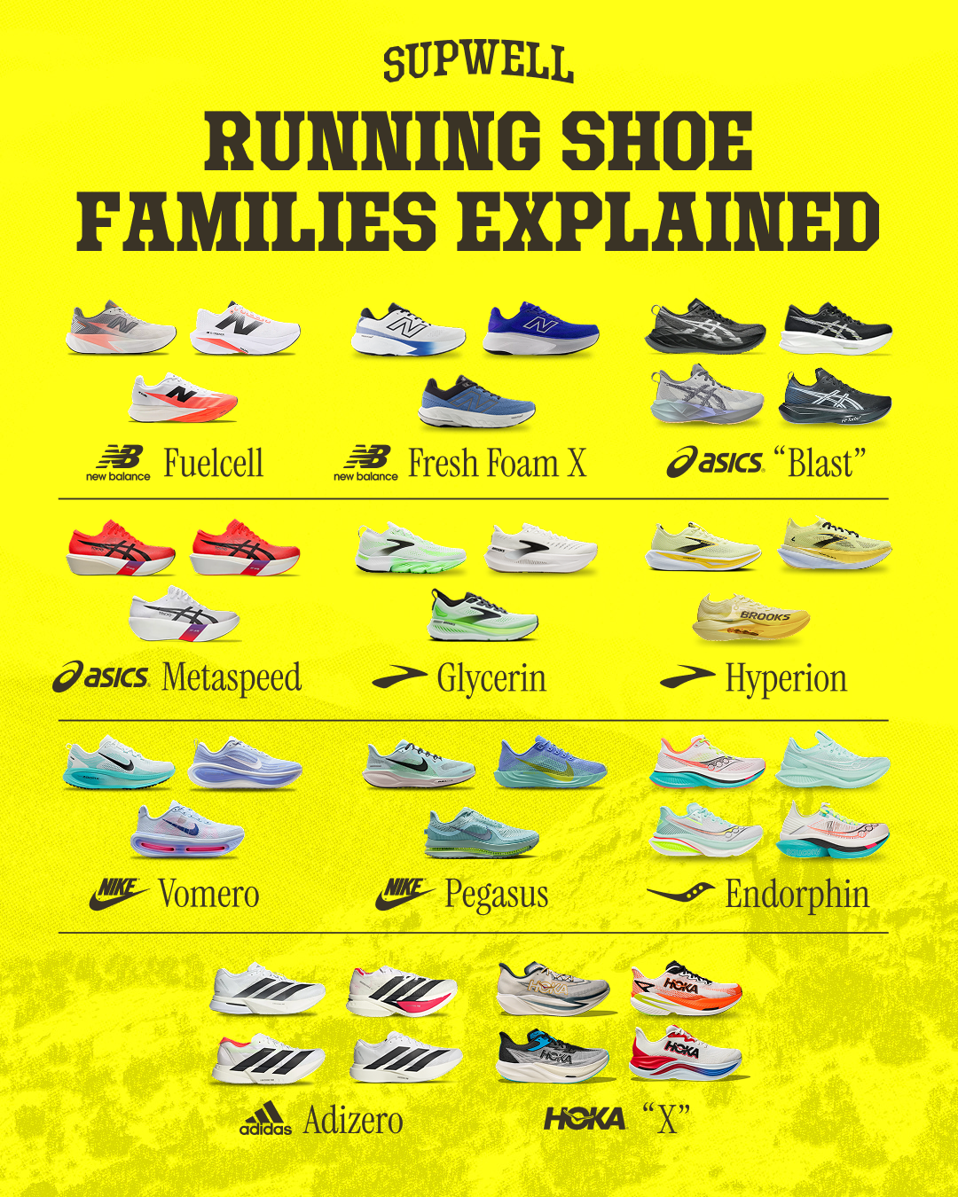 Every brand builds shoes in families so each lineup covers different needs, from easy miles to race day speed. Once you understand the family, it’s easier to know how models relate, what’s replaced year to year, and which shoe actually fits our training goals. From soft cushion to pure speed every family is different.